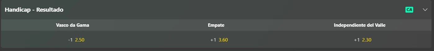 Handicap: Vasco -1 / Empate (com handicap) / Independiente +1